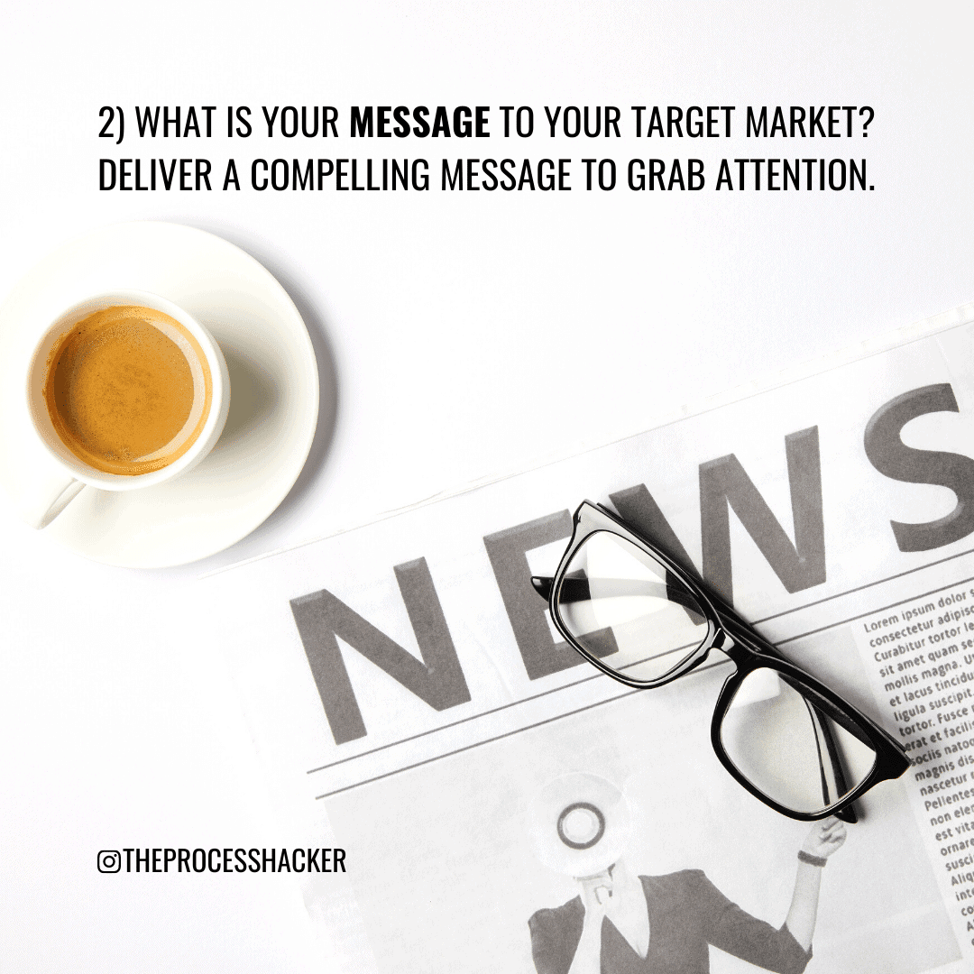 Next, you should craft a compelling message to get your target market’s attention and impel them to respond. Most advertising is bland and ineffective. Instead, your marketing strategy should have purpose with your advertising composed of two critical components: