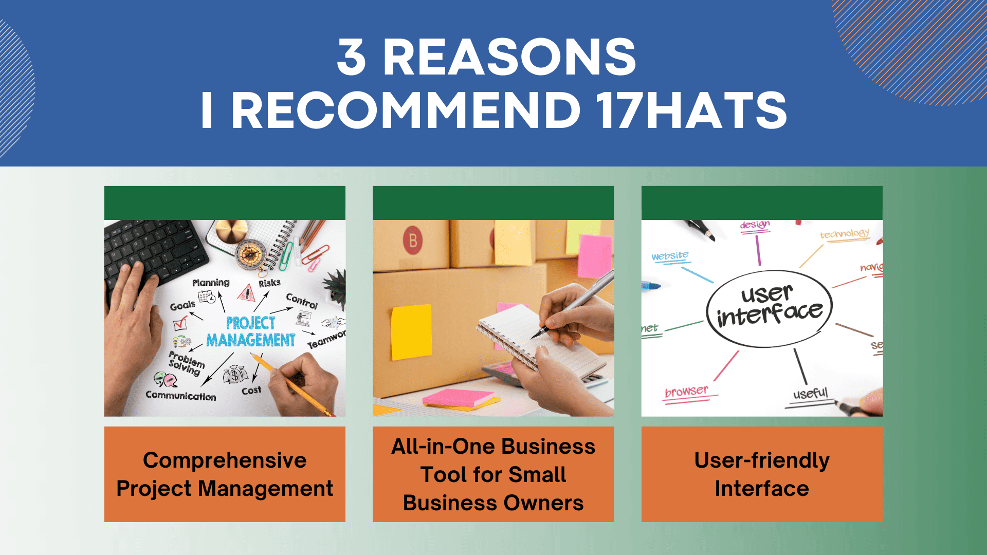 After using 17hats, I've had the opportunity to experience firsthand how this software can transform the way you manage your business. Here are my top three reasons why I highly recommend 17hats.