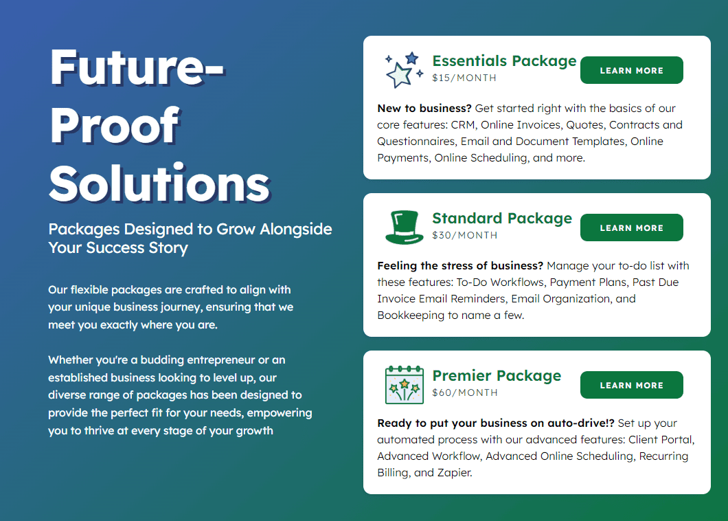 17hats offers three pricing tiers designed to cater to different business needs and budgets.