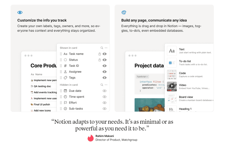 Notion pages provide an equally impressive degree of customization for your workspace. You can create notes, tasks, wikis, databases, and more. Then, organize them in a way that best suits your workflow.