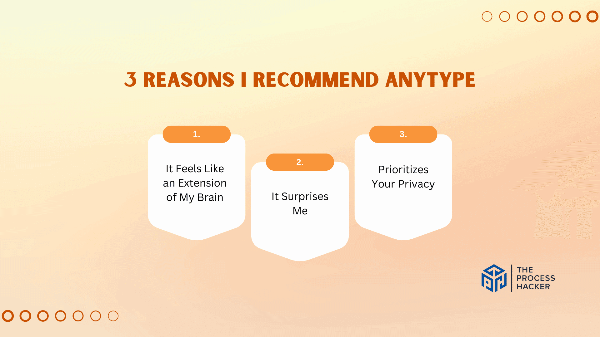 Privacy is tremendous for me. Anytype keeps your notes encrypted and gives you complete control – you can even run it on your own server if you want to!