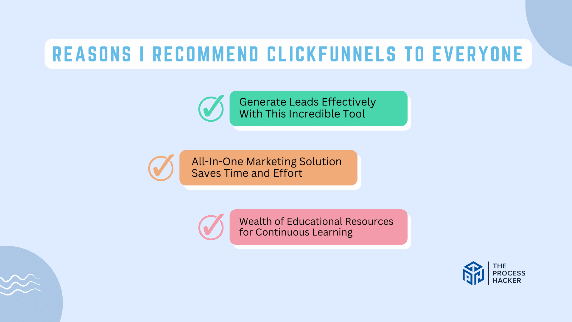 Finally, the wealth of educational resources that ClickFunnels provides is simply unmatched. Whether you're a newbie or a seasoned marketer, there's always something to learn from their webinars, tutorials, and courses.