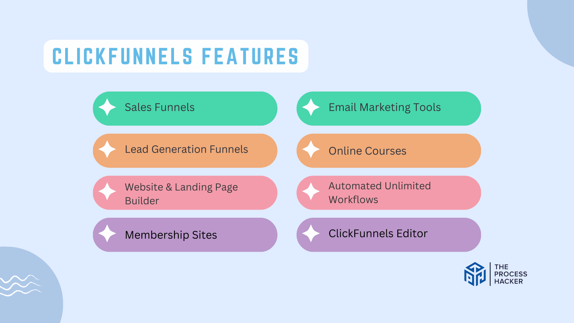 Let’s break down the key features of ClickFunnels and delve into the details of each feature: