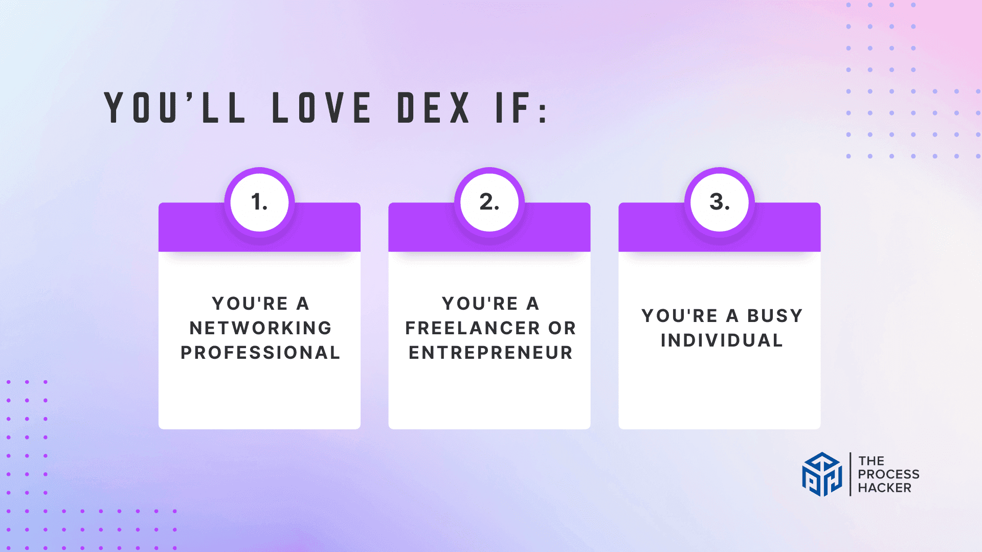 - You're a Networking Professional: If you frequently connect to new people you would otherwise make potential clients in the future and need help keeping track of all your network contacts, Dex is an ideal solution. It lets you manage all your connections in one place, ensuring you never miss a follow-up or important date.
