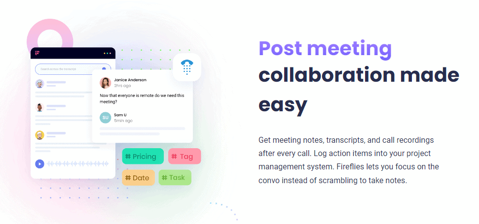 - Easy collaboration: With Fireflies, you can easily share meeting summaries and recordings with team members. This promotes better collaboration and ensures everyone is on the same page.