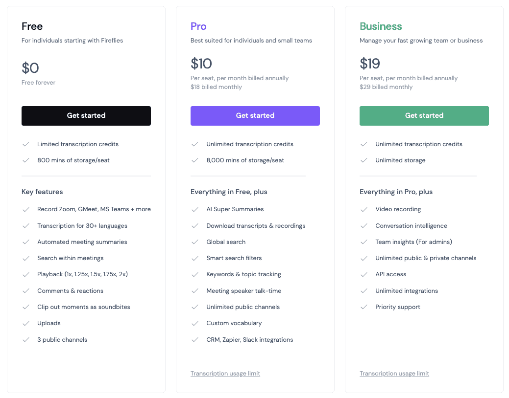 Cost may be a concern, but starting at $18 per user per month, Fireflies.ai offers affordable pricing plans for businesses and enterprises. The value it brings in terms of meeting efficiency and sales acceleration it totally worth the investment.