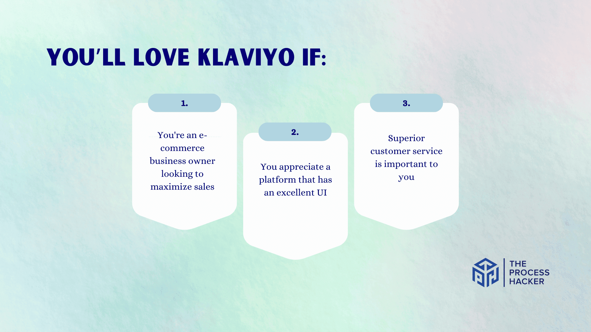 - Superior customer service is important to you. Klaviyo's customer support team is always ready to assist you, ensuring that any issues are promptly addressed.
