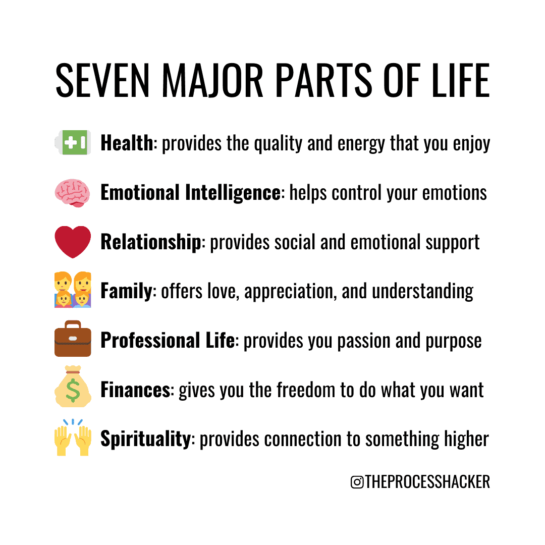 In Live It, Jairek Robbins defines seven major categories for life: