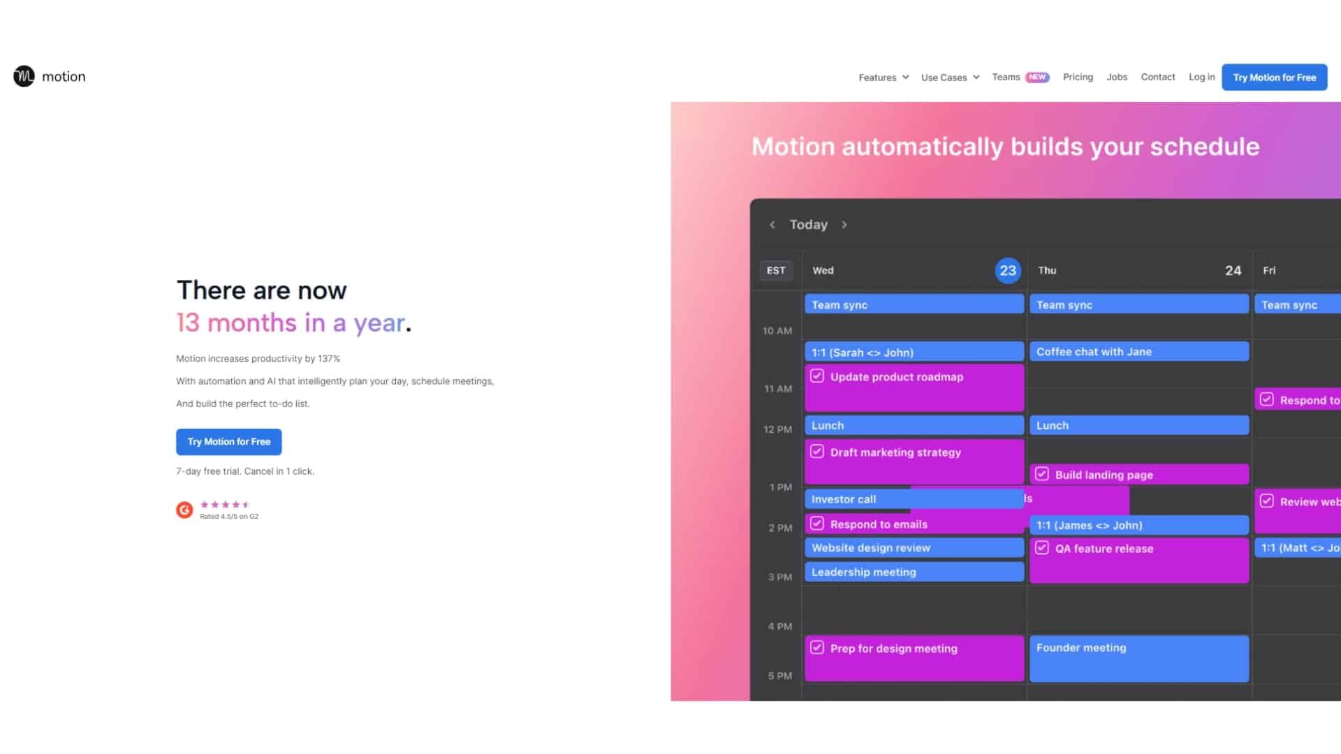 Try Motion if you're looking for a tool to improve productivity and streamline your workday. Start with their free trial, and see how it can transform your task management.