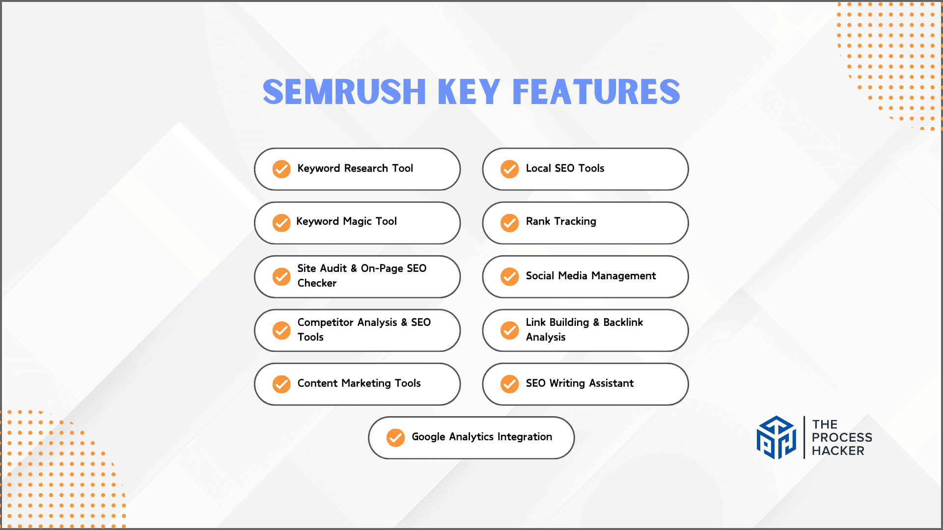 Semrush's backlink analysis has been instrumental in boosting the organic search authority of “The Process Hacker” website. The platform helps identify natural link-building targets, fostering campaigns that improve rankings and drive referral traffic.