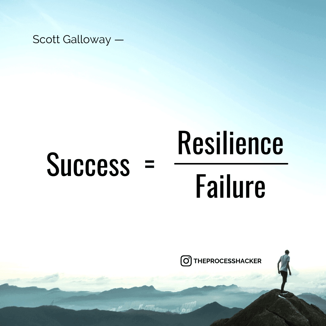 - Success = Resilience / Failure: Everyone deals with obstacles, so your success is correlated to your ability to be resilient and overcome failure.